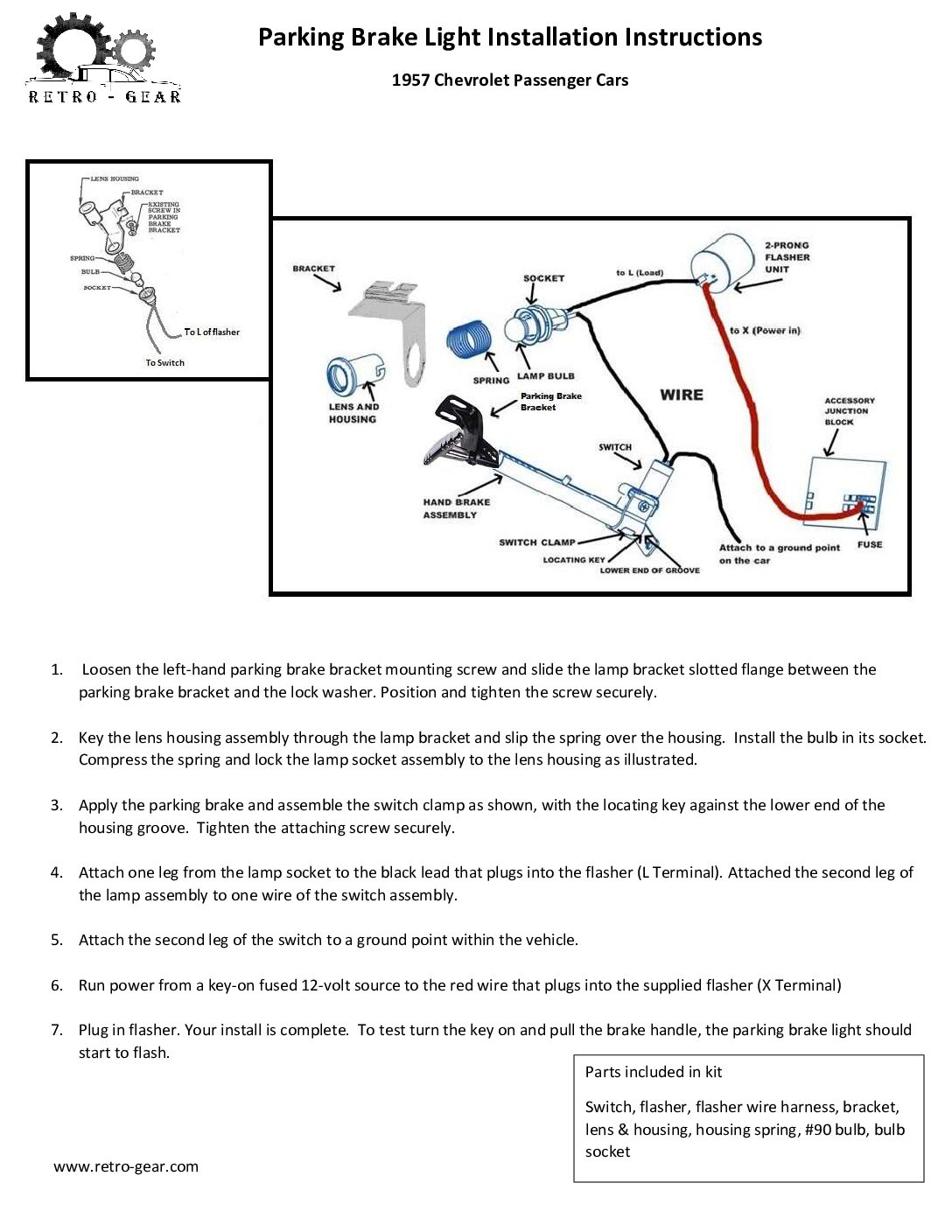 - Provides a Flashing Red Light when the emergency brake is applied when the key is in the on position